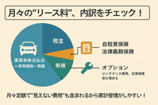 「月々〇万円から!」という広告はよく見かけますが、その「リース料」に何が含まれているのか、具体的にご存知でしょうか。