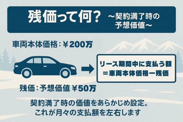 【車両本体価格】-【残価】=【リース期間中に支払う金額】